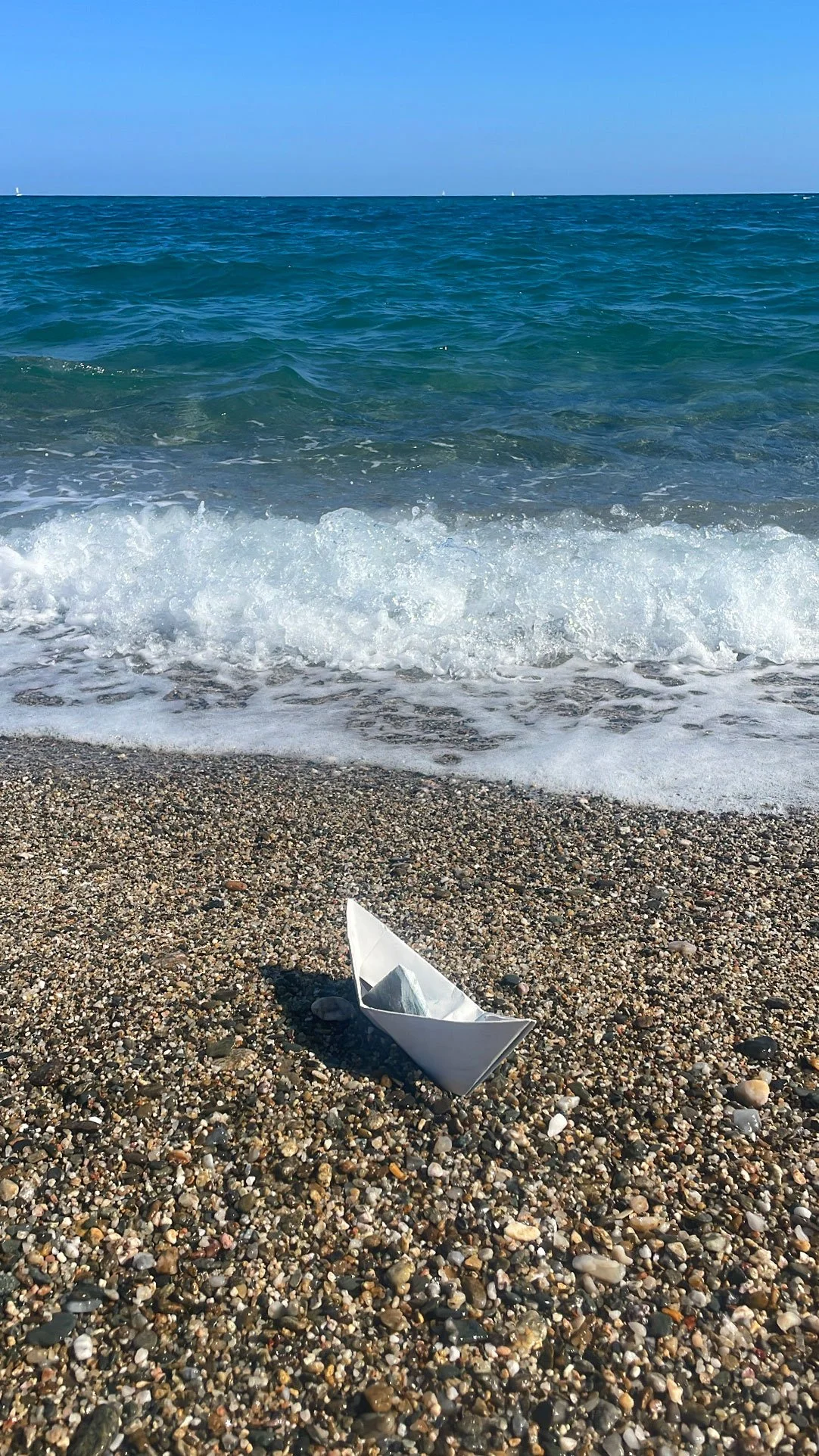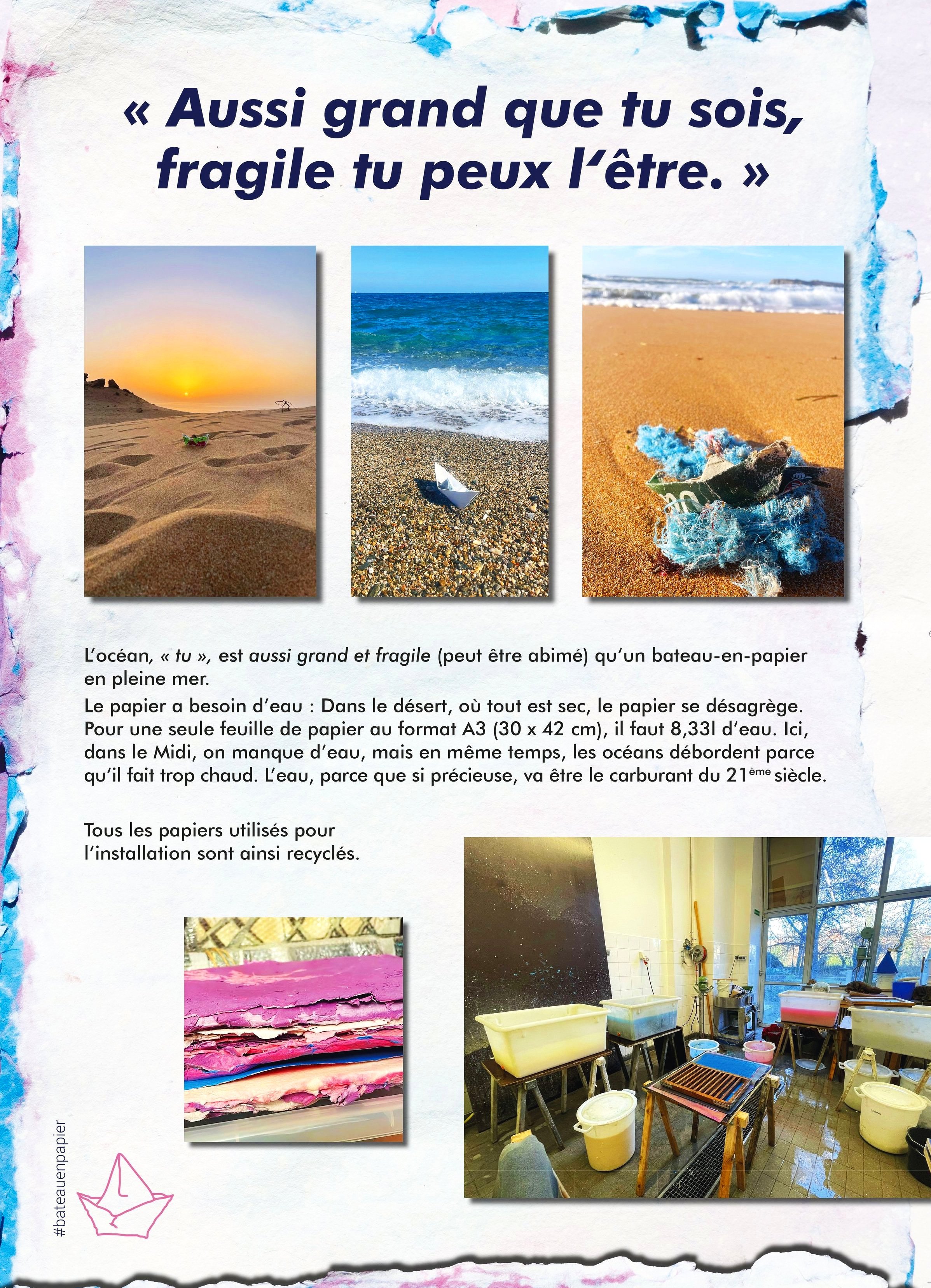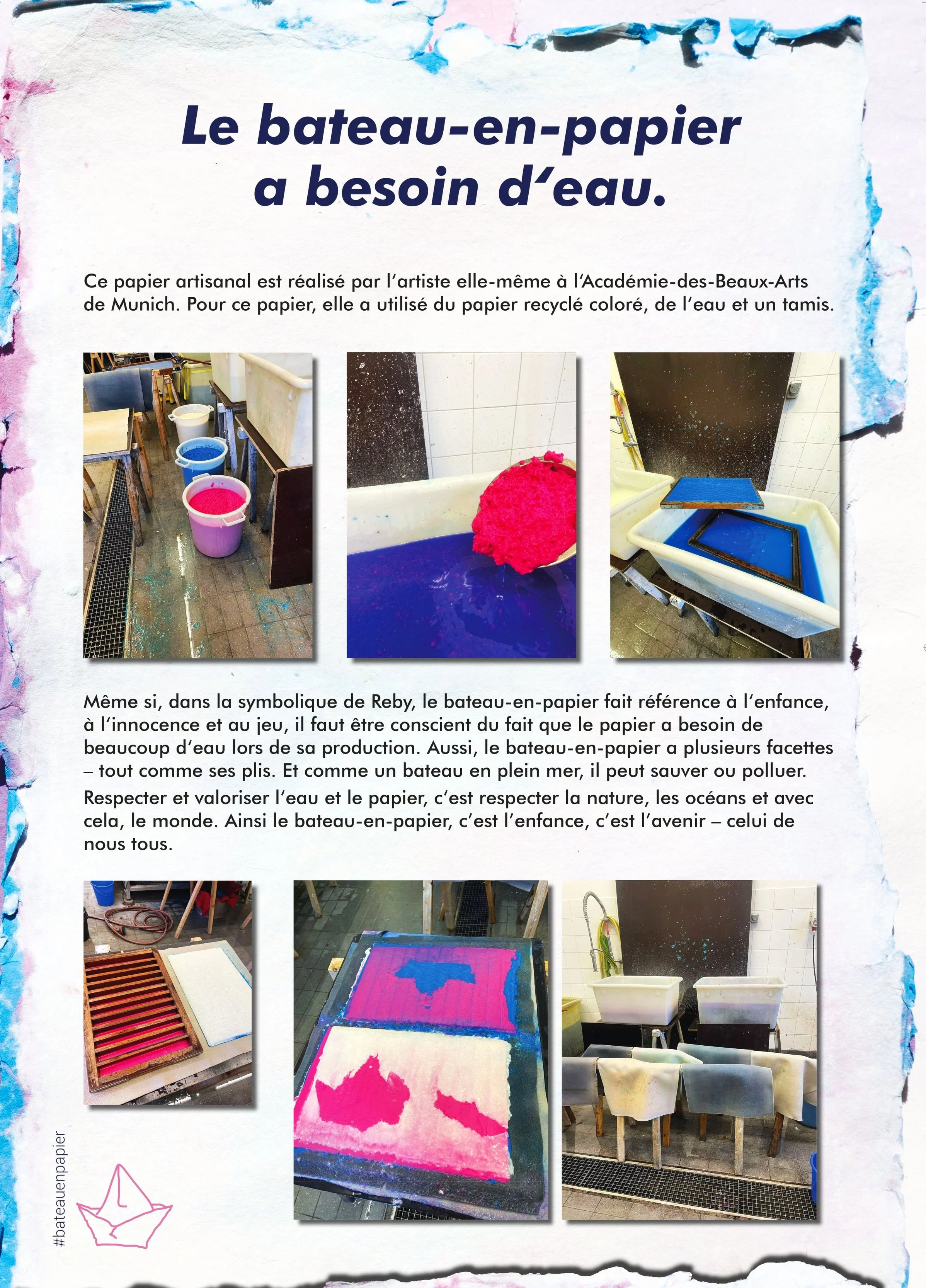 Dies ist eine geschützte DPMA-Bildmarke. Ein Papierboot am Strand vor der Gischt. Künstlerische Signatur und Metapher für die großen, aber doch fragilen Ozeane, auch Symbol für die Kindheit und Unschuld, von Einfachheit und Lebensfreude, von Spiel und Zerbrechlichkeit, damit einhergehend Respekt und Achtsamkeit.